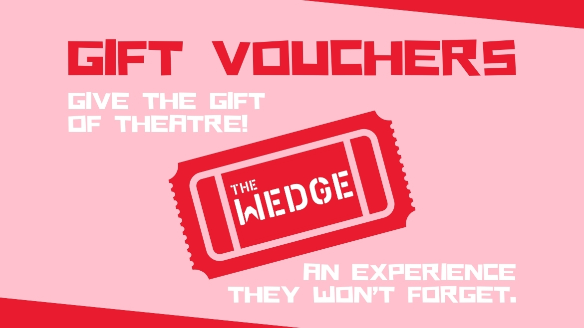 Gift vouchers can be purchased in a variety of amounts and redeemed for any event or membership at The Wedge. They’re available online, for use either on our website or directly at our Box Office.